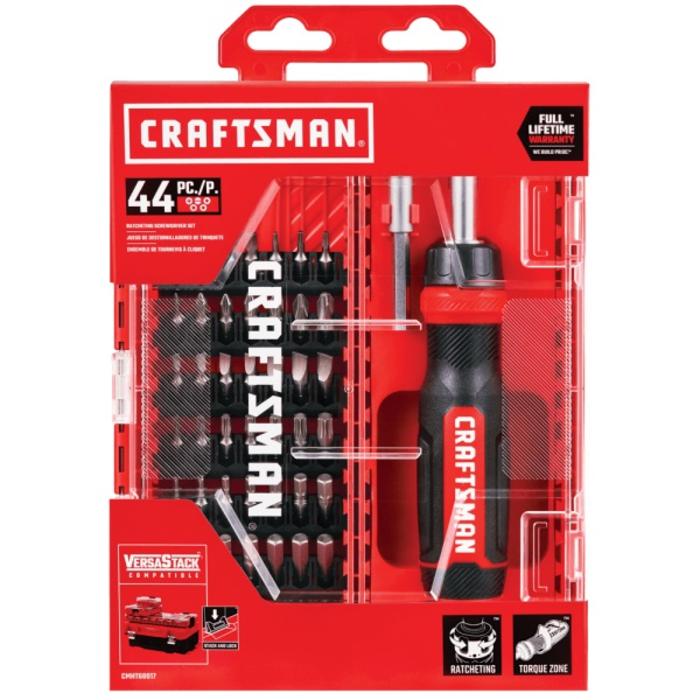 • El juego de destornilladores de trinquete CRAFTSMAN® de 44 piezas con estuche compatible con VERSASTACK? es la solución perfecta para mantener todas sus puntas en un solo lugar, listas para usar en la mayoría de los proyectos