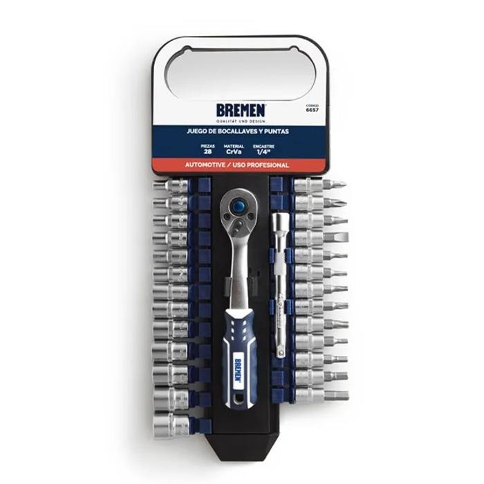 • El juego de bocallaves con puntas portátil 1/4" Bremen cuenta con 28 piezas lo que lo convierte en una herramienta completa