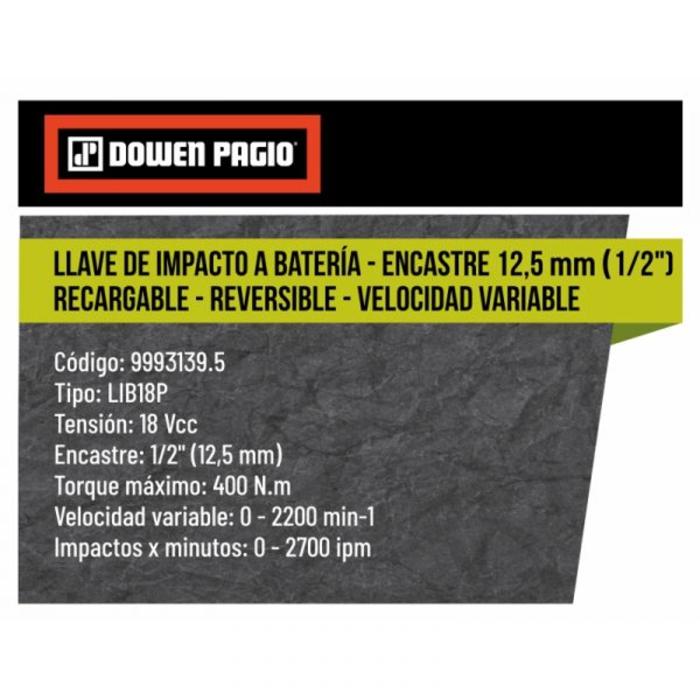 Llave de Impacto 1/2" 18V Dowen Pagio LIB18P 9993139.5