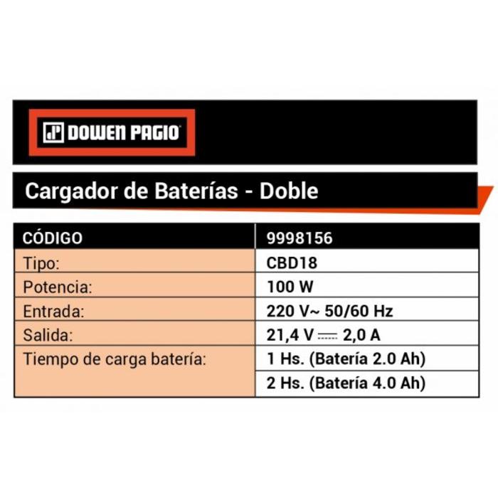 Cargador de Baterias 18V Doble Dowen Pagio CBD18 9998156
