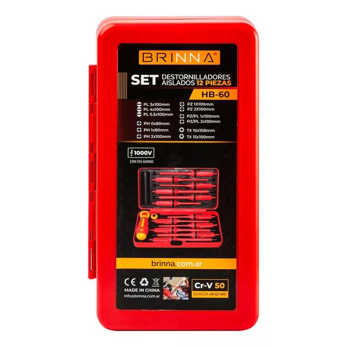 Set de Destornilladores Aislados 1000V 12 en 1 Brinna HB-60