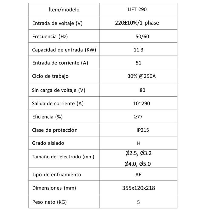 • Soldadora Inverter MMA - TIG LIFT (no incluye la torcha TIG, se vende aparte)