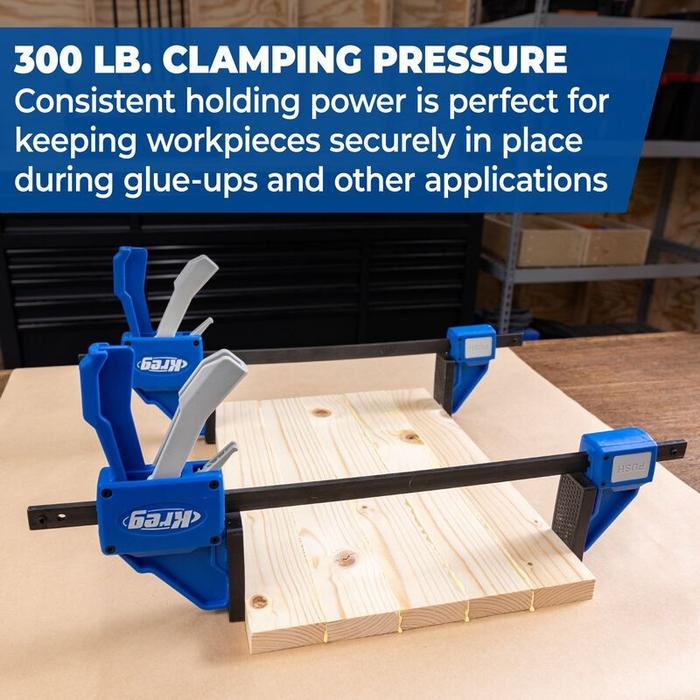 • La fuerza de sujeción de 300lb proporciona un amplio poder de sujeción para trabajos exigentes y encolados, evitando resbalones y asegurando resultados más precisos, incluso con materiales difíciles de manipular