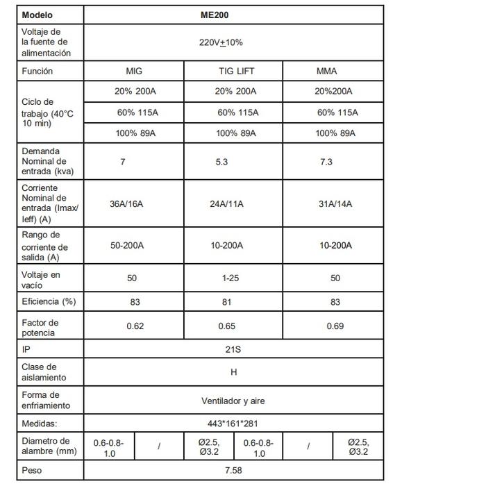 • La soldadora inverter ME-200 es una máquina multiproceso diseñada para ofrecer versatilidad y eficiencia en trabajos de soldadura