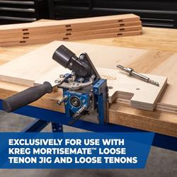 • Diseñadas para ofrecer versatilidad, estas fresas son compatibles con cualquier taladro y solo se pueden usar con la plantilla para espigas sueltas MortiseMate