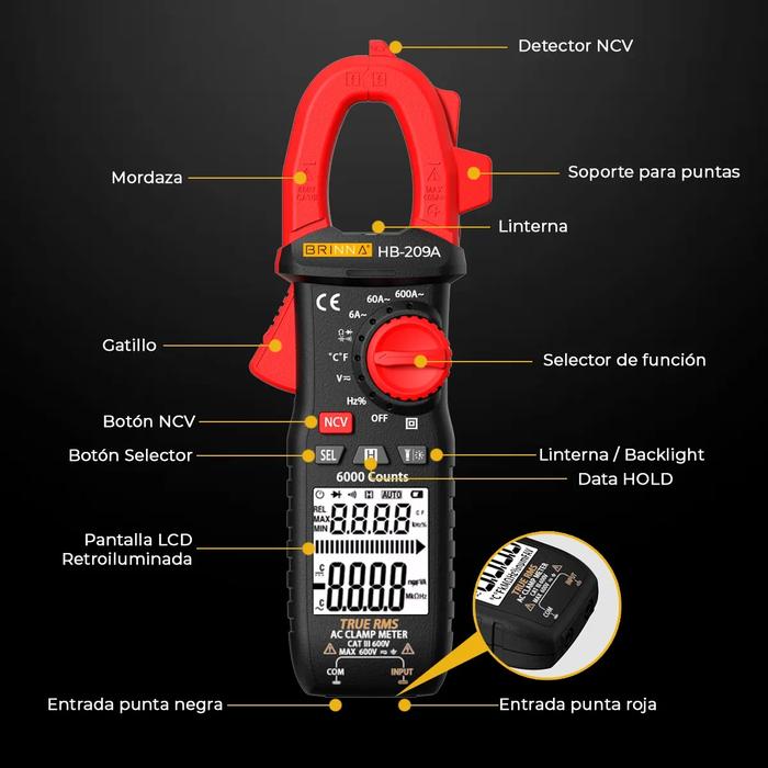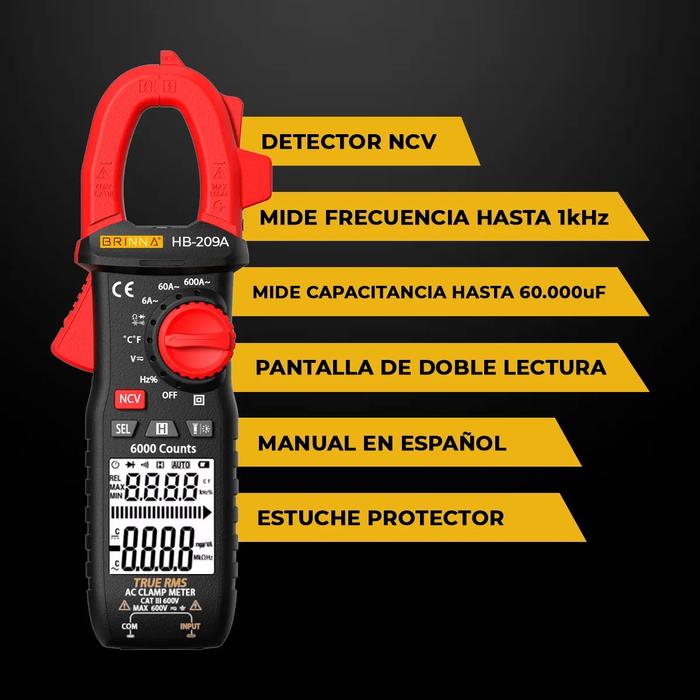 Pinza Amperometrica Digital Brinna HB-209A