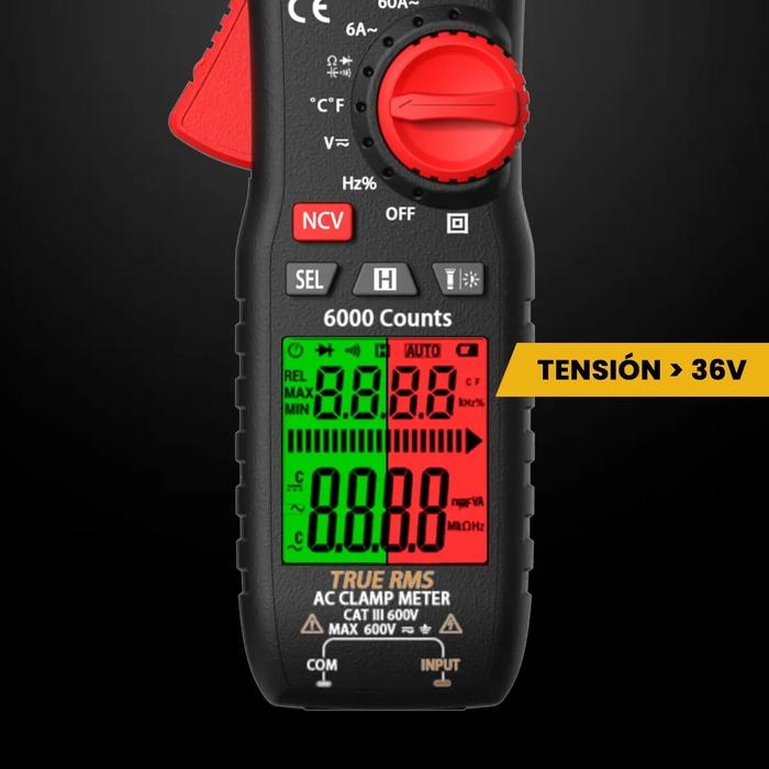 • Muestra de Medición: 6000 cuentas - True RMS
