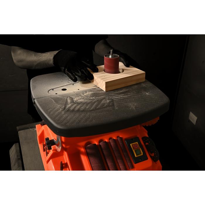 • Lijadora de banda con mesa de trabajo inclinada para lijado de bordes y biseles