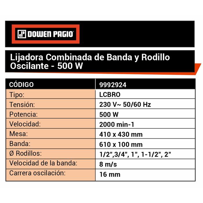 Lijadora Combinada Oscilante de Banda y Rodillo Dowen Pagio LCBRO 9992924