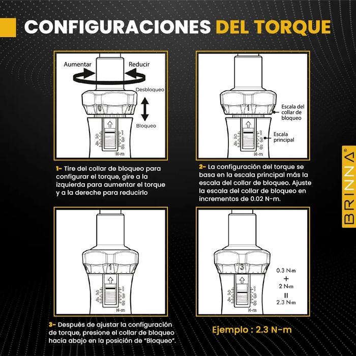 • Escala principal visible para ajuste seguro del torque
