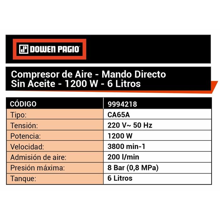 Compresor de Aire Portátil Sin Aceite Dowen Pagio CA65A 9994218