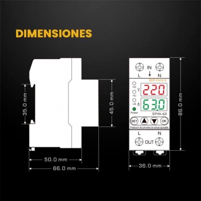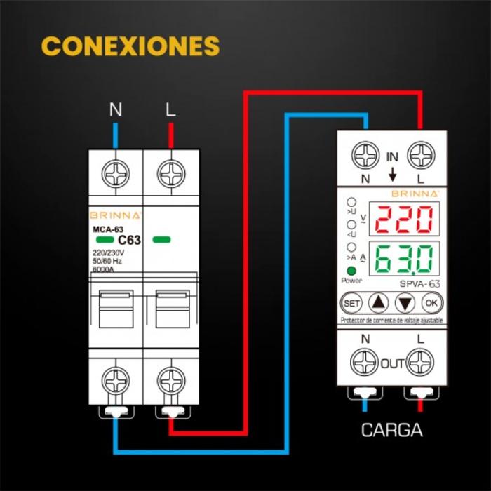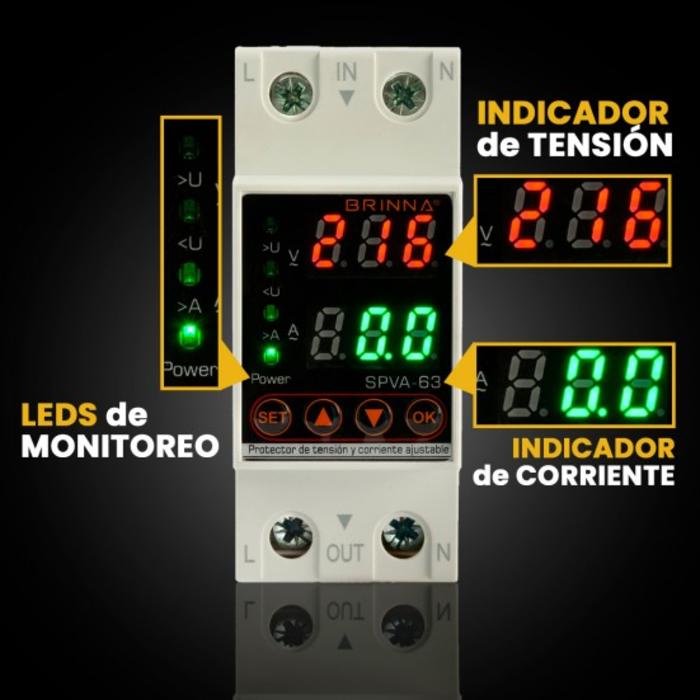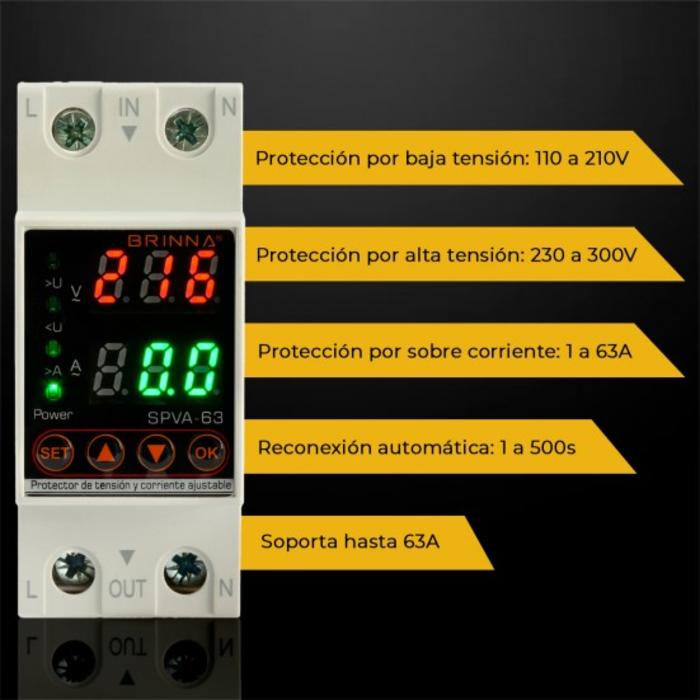 • El SPVA-63 es un protector de subtensión, sobretensión y subcorriente monofásico, ideal para instalaciones residenciales y comerciales