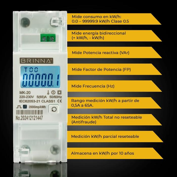 • Pantalla LCD (kWh): 5+1 (99999.9 kWh)