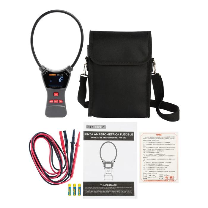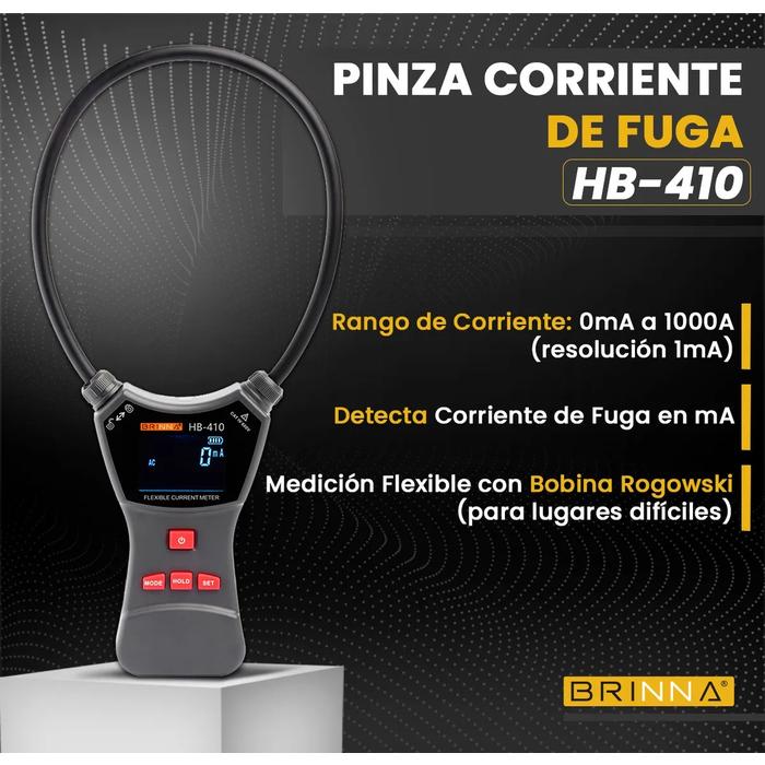• La pinza amperométrica HB-410 de Brinna es una pinza amperométrica flexible diseñada para medir corriente alterna (AC) de alta intensidad y corriente de fuga con alta precisión, buena linealidad y fuerte inmunidad al ruido