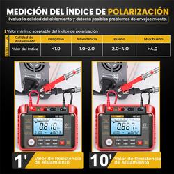 • Es ideal para evaluar la resistencia de aislamiento en grandes transformadores, generadores, motores de alta tensión, capacitores de potencia, cables eléctricos, pararrayos, entre otros