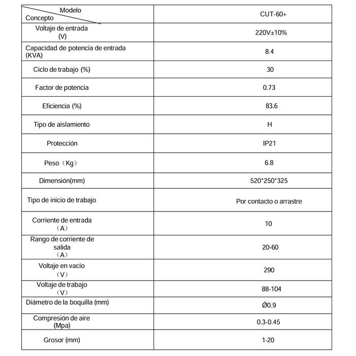 • Espesor máximo de corte: 20MM (perfecto, sin rebarbas 12MM)