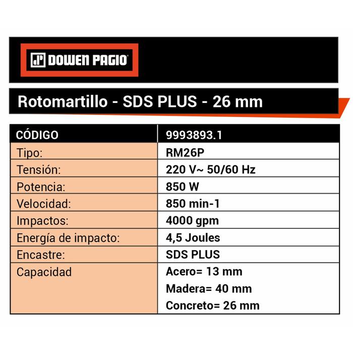 Rotomartillo SDS Plus 26MM 850W Dowen Pagio RM26P 9993893.1