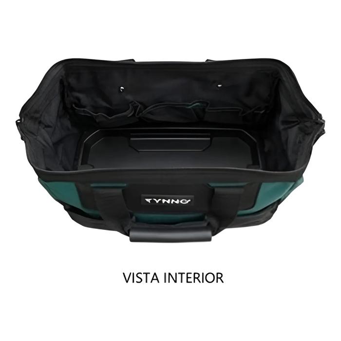 • Confeccionado con poliester de 1680 diniers, correa acolchada y asas antideslizantes, este bolso permite no solo transportar sino almacenar en forma permanente muchas herramientas