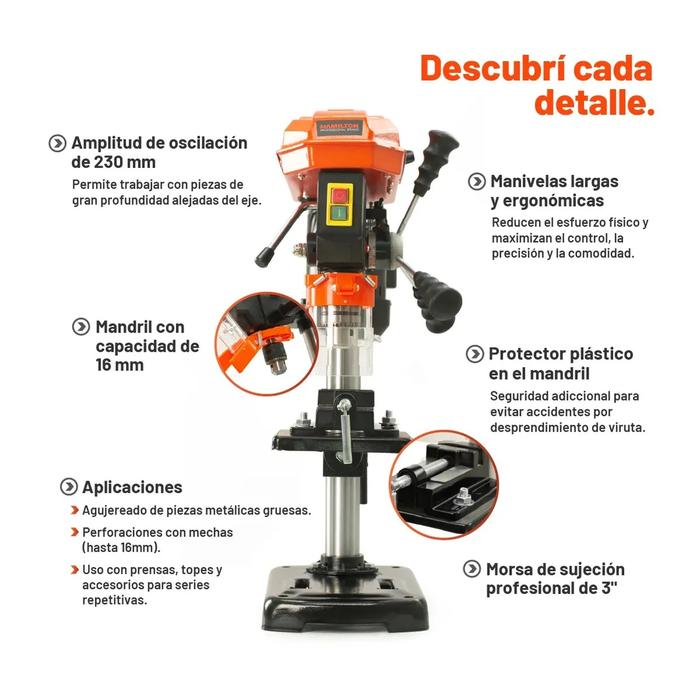Taladro de Banco 16MM 500W Hamilton HTB16